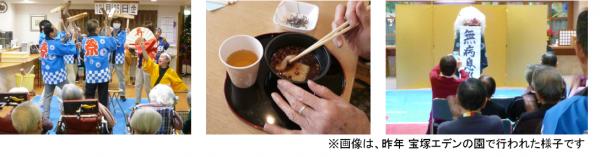聖隷福祉事業団(法人本部:静岡県浜松市/理事長:山本敏博)で運営する、介護付有料老人ホーム「エデンの園」、介護付有料老人ホーム「ニッセイエデンの園」(共同事業)、ケア付き高齢者住宅「明日見らいふ南大沢」(運営受託事業)の10施設で、年末年始に向けて沢山のイベントを企画しています。各施設で入居者に向けて工夫されたイベントのご紹介です。