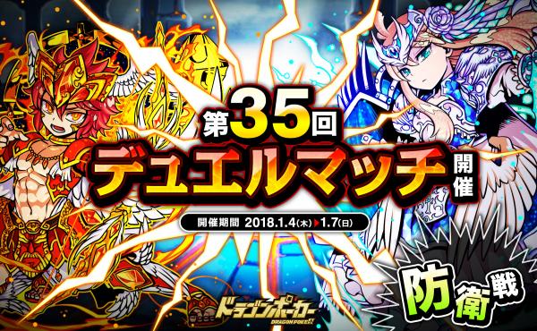 1月4日(木)より、1vs1のリアルタイム対人バトル「第35回デュエルマッチ本戦」を開催いたします。今回のルールは「防衛戦」です。デュエルマッチでは、バトルで獲得できる「デュエルP」に応じてランキングが決まり、リーグ終了時に報酬が獲得できます。また、累計勝利数に応じて、限定カードも手に入ります。相手の心理を読み、1vs1の真剣勝負に挑みましょう!