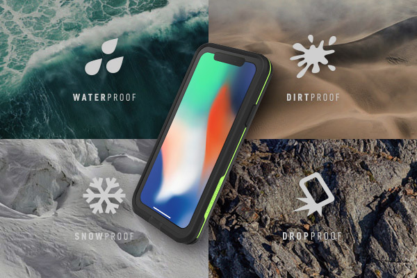 防塵性能基準6等級の最高レベル(IP6X)を持ち、泥や砂、塵や埃からiPhone Xを保護します。端末にとって、微粒子がケースと端末の間に溜まると深刻なダメージとなる可能性がありますが、最高レベルの機能を持つLIFEPROOFならば、微粒子の侵入を防げます。