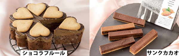 サブレ生地の上に濃厚なショコラ味のベイクドチーズを重ねて焼き上げ、マダガスカル産・インドネシア産・ガーナ産・コートジボワール産カカオの生チョコ、ミルクチョコレートの生チョコを各1種ずつ重ねた3層からなるチョコレート。