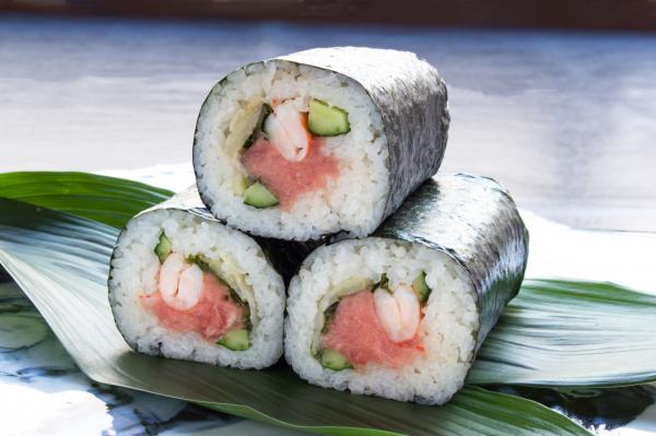 まぐろ中落ち、海老、きゅうり、がり、しそ入り