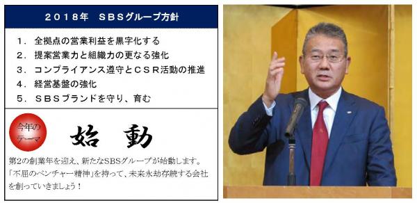 私は、今後、SBSグループが50年、100年と存続する会社になるかは、これからの30年にかかっていると考えています。SBSグループのDNAである「不屈のベンチャー精神」を持ち続け、決断と変化のスピードを失うことなく、新しいSBSグループを創っていきましょう。