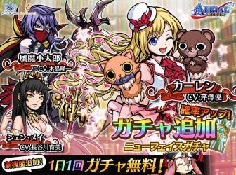 2018年1月9日(火)から、期間限定で特定キャラクターの召喚確率がアップする「ニューフェイス」ガチャを開催いたします。本イベントでは新キャラクター「カーレン」(CV:芹澤優)をはじめ、「風魔小太郎」(CV:木島隆一)やピックアップ対象の「シェン・メイ」(CV:長谷川育美)の召喚確率がアップします。この機会をお見逃しなく!