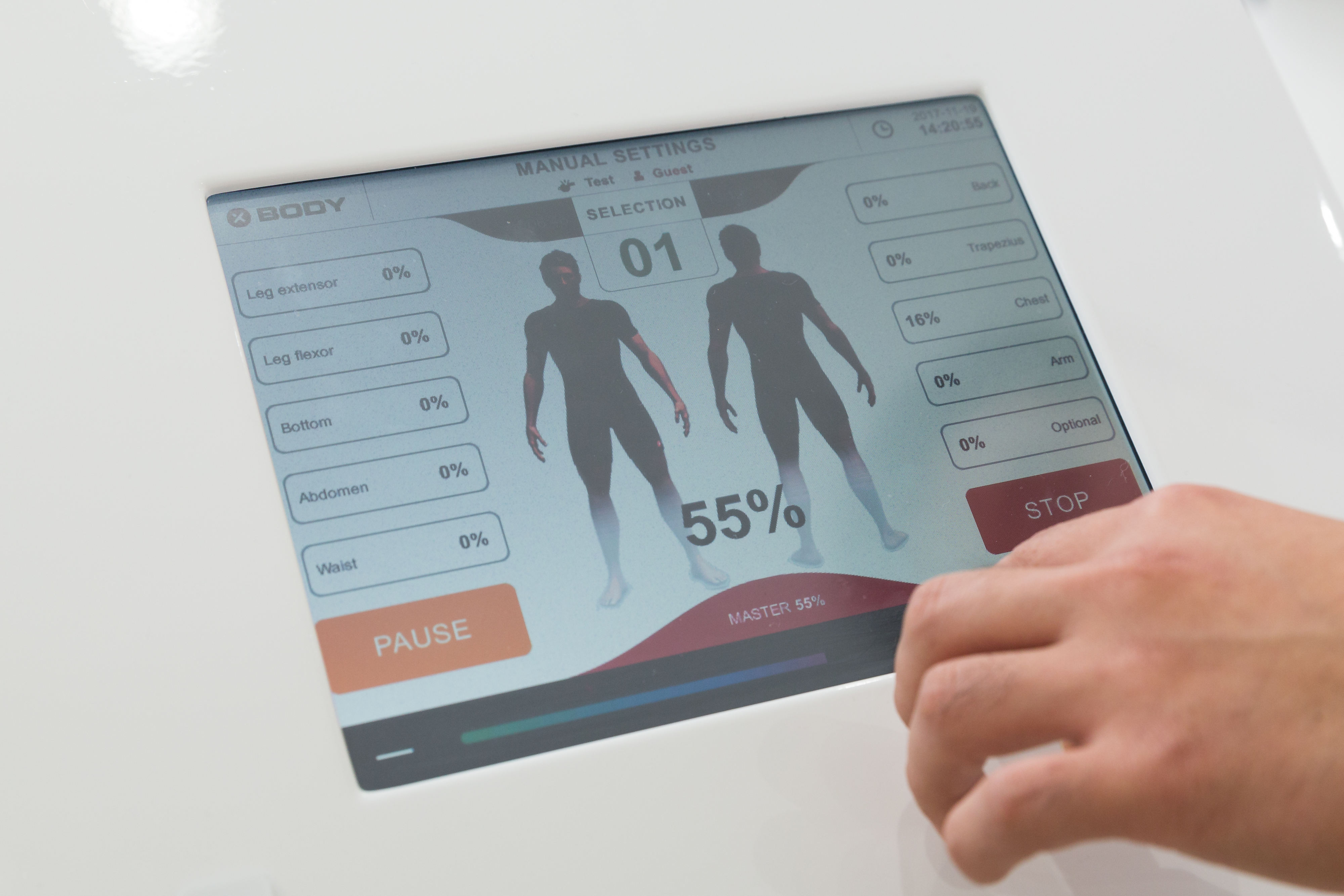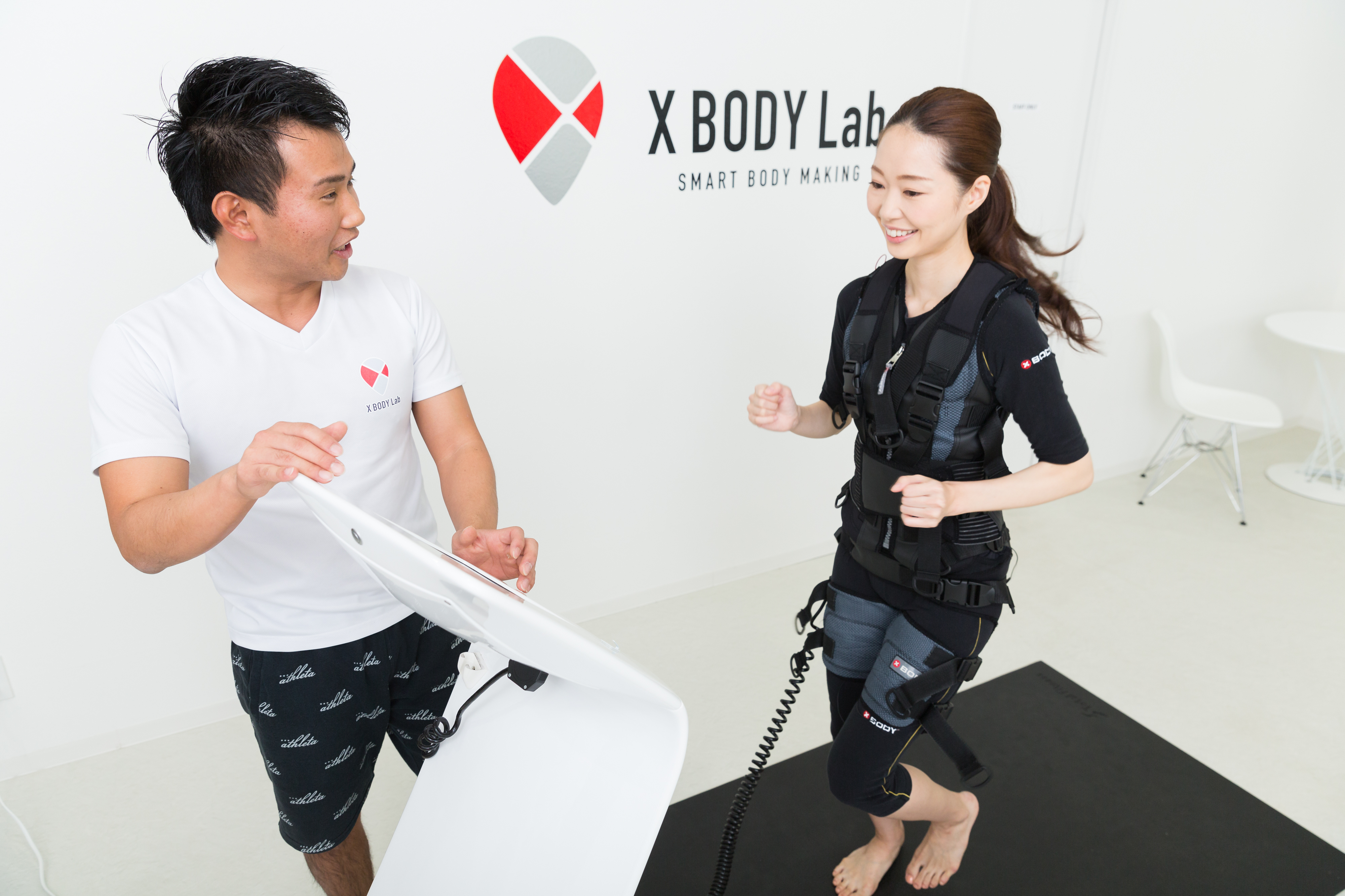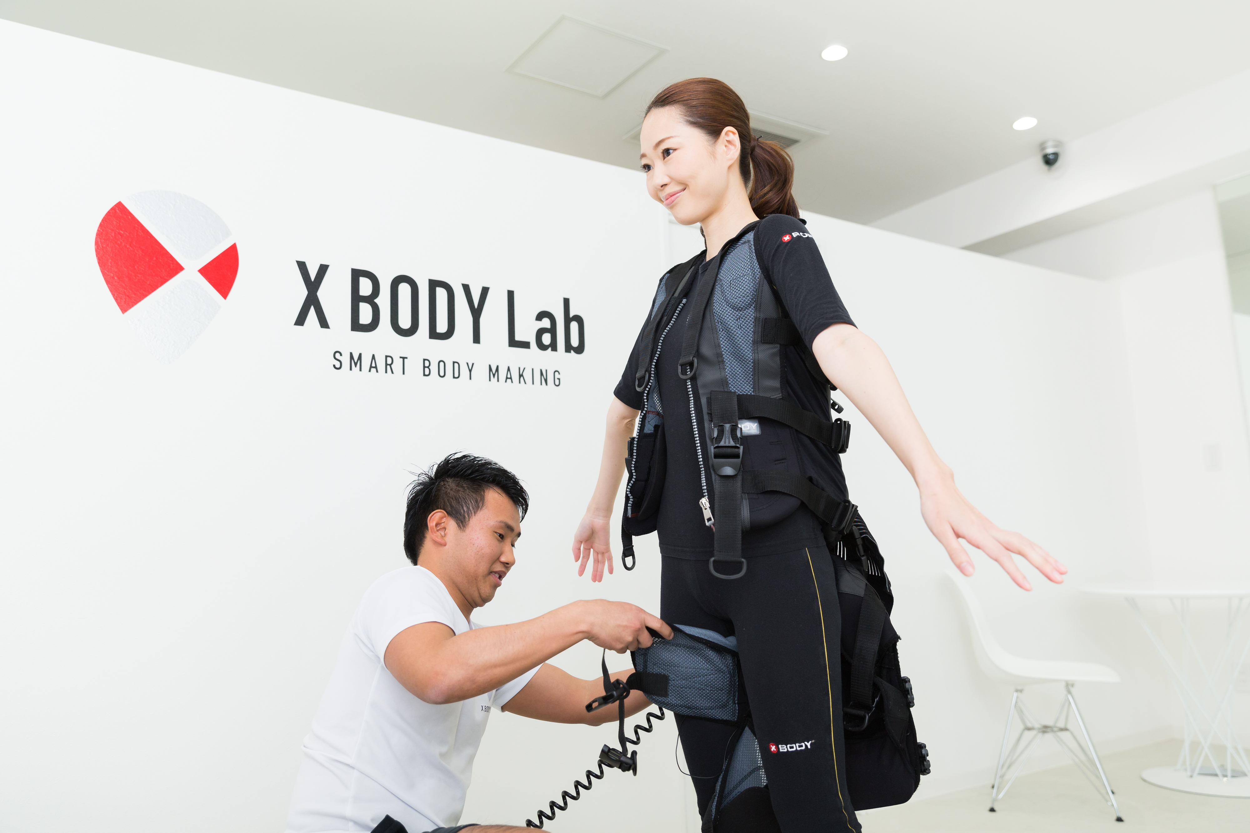 トレーニングでは、全身の約80%~90%の筋肉を同時に刺激することができる専用ボディースーツを着用し体を動かします。「X BODY」は、筋肉を発達させ体を大きくするバルクアップやシェイプアップ、体幹強化など目的に合わせて電気刺激の強度や深度、周期を自由にコントロールすることができ、わずか20分で一般的なスポーツジムで行う筋力トレーニングの3~4時間分に相当する運動効果を得ることができます。