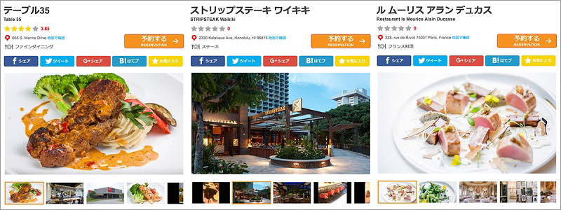 ●サービス展開エリアは日本人渡航者数の多い都市を中心に25地域60都市。ハワイ、グアム、香港、パリなどのレストランが特に人気です。