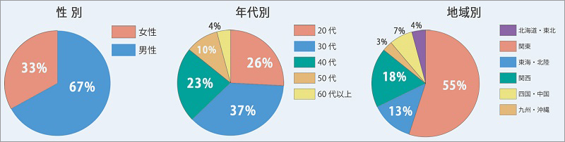 本サービスの利用ユーザー構成は、全体の2/3が女性、63%が20~30代となっており、若い女性に特に支持されています。