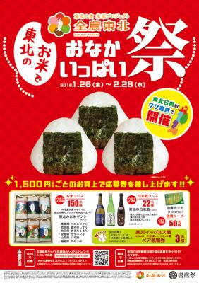 日本出版販売株式会社(代表取締役社長:平林 彰、略称:日販)は、全国各地の日販支社・支店と地元書店との連携により実施している、地域ごとの「書店祭」の一環として、1月26日(金)より、全国農業協同組合連合会(代表理事理事長:神出 元一、略称:JA全農)の協力のもと、東北エリアの77書店にて「東北のお米でおなかいっぱい祭」を実施します。