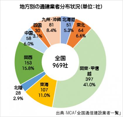 約400社の通建業者が関東・甲信越地方に集中