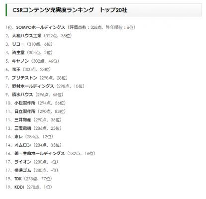 ■CSRコンテンツ充実度ランキング トップ20社