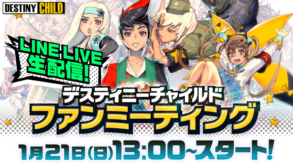 2018年1月21日(日)13:00より『デスティニーチャイルド』初のオフラインイベント『デスティニーチャイルド ファンミーティング』をLINE LIVEで生配信!
