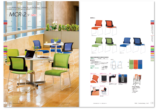 ・メッシュ構造で長時間の打ち合わせでも疲れないと好評のコミュニケーションスペース用スタッキングチェアNSB・NSWシリーズと、新デザインでスタイリッシュになったMCR-2_vシリーズ