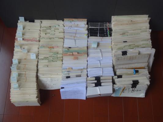 著者によれば、「もっとも多くカードを書いた年代は、感受性も強く、働き盛りの三十代、四十代の頃で、一日に何枚も書いている時も少なくありません。年を重ねるにつれ、その量も減ってきましたが、平均して一日一枚は書いていると思われるので、少なく見積もっても、書いたカードの総数は一万枚は下らないと思われます。読み返すとその内容は、その時々の自分の立場を反映したものであり、三十代半ばまでの一担当者の時代、四十代の部下のできたマネージャーの時代、五十代の組織の長として責任を持たされた時代、それぞれの時代の悩みが書き連ねられていました」とのこと。