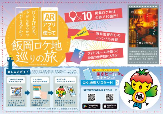 このたび、千葉県旭市では岩井俊二監督作品『打ち上げ花火、下から見るか?横から見るか?』の舞台となった千葉県旭市・飯岡エリアのロケ地を案内・堪能する、AR(拡張現実)アプリのサービスを1月19日より開始しました。スマートフォン専用アプリ「SATCH VIEWER(サッチビューワー)」をダウンロードの上、どなたでも無料でご利用いただけます。(App Store、もしくはGoogle Playより無料提供 )