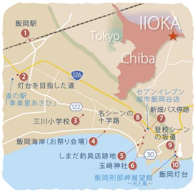 飯岡エリア内の10箇所のロケ地をGoogle mapで連動して表示、またそのスポット情報と撮影シーンを掲載。さらにはエリア内の現地スポットでアクセスすると、下記の特典3つをご利用いただけます!