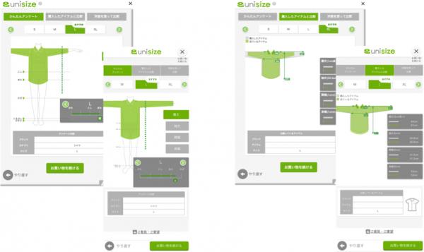 unisize(https://cl.unisize.makip.co.jp/)はネットで洋服を買う際に、身体に合うおすすめサイズを推奨するサイズレコメンドエンジンです。国内外の多量な洋服ブランドサイズを有し、身体情報・特徴などユーザーが知っている範囲の情報に基づき最適なサイズを推定する独自のアルゴリズムでレコメンドを行います(※特許申請中)。EC利用者は最短1分の簡単なアンケートに答えるだけで、自分に合うおすすめサイズを確認することができます。また、過去に購入した洋服と比較する「購入履歴比較」、手持ちの着丈や身幅の実寸を入力して比較する「実寸比較」の機能が追加され、ユーザーが知っている情報の粒度に合わせておすすめサイズを確認できるようになりました。