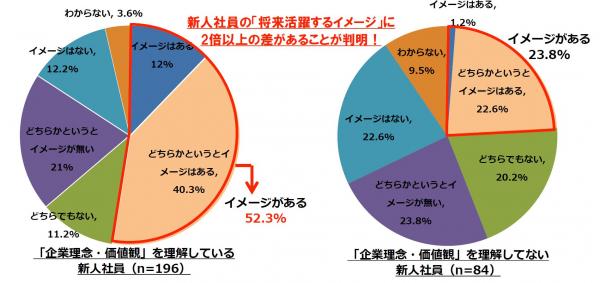 ●「企業理念・価値観」を理解している新人社員は、理解していない新人社員と比較し、2倍以上が活躍するイメージを持っている