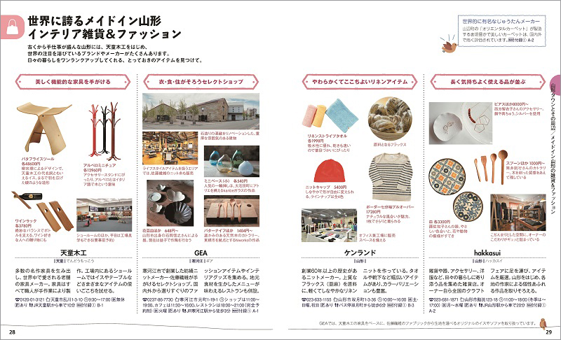 ●「世界に誇るメイドイン山形(P28)」の品々は手仕事の風合いと機能性を兼ね備えています。