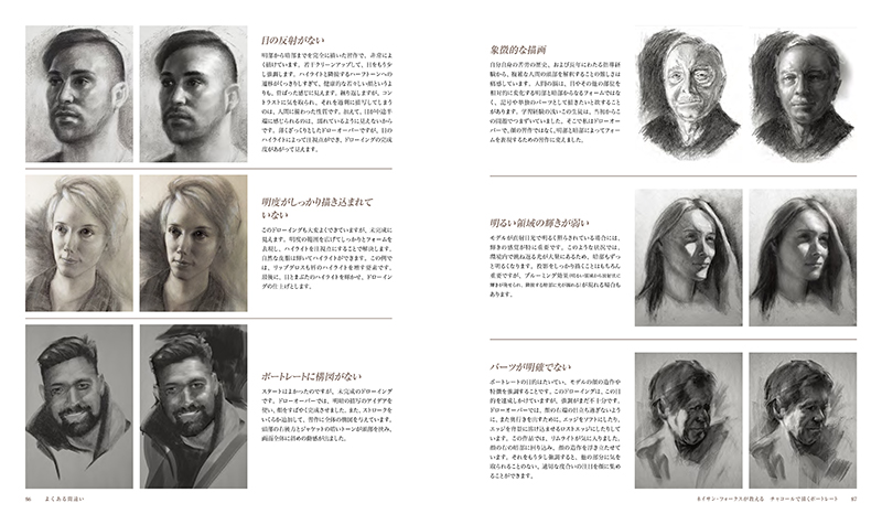 ポートレートを描く全工程を豊富な実例とともに解説。また、生徒作品の添削例からは、誰もが陥りやすい落とし穴を客観的に知ることができます。