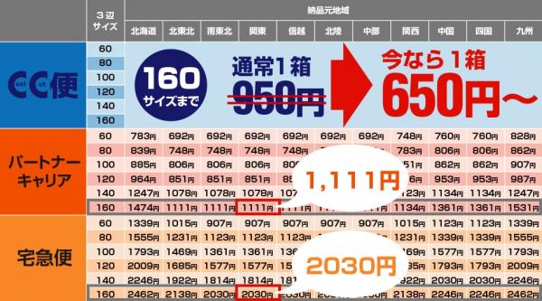 ・160サイズまでの箱が、全国どこから納品しても一律950円→限定価格650円!!※沖縄・離島を除く