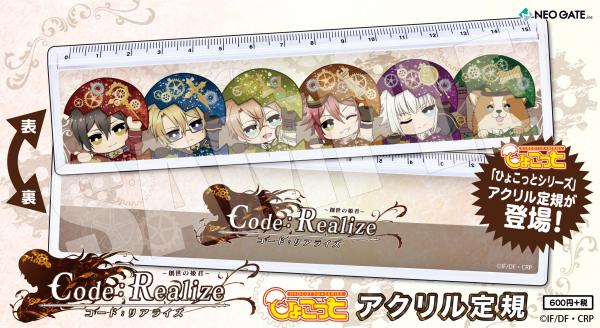 TVアニメ「Code:Realize ~創世の姫君~」より、【ひょこっとシリーズ】の描き起こしイラストを使用した『ひょこっとラメきらアクリルチャーム』『ひょこっとトレーディング缶バッジ』『ひょこっとアクリル定規』の3商品が登場!