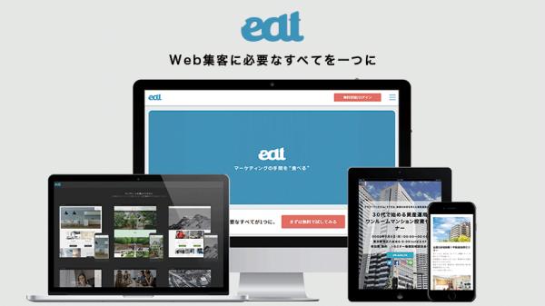 「eat」はホームページの作成から潜在顧客の獲得、その後の見込み顧客への育成にかかる手間を自動化によって省くことで、Web集客における「知識不足」、「リソース不足」、「予算不足」といった課題を解決し、本業に集中できる環境を提供することをコンセプトに開発されたマーケティングツール。
