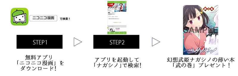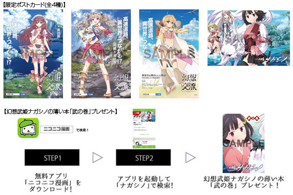 関連商品ご購入1,000円(税込)ごとにランダムで手に入れられる『幻想交流』の【限定ポストカード(全4種)】をご用意。また、店頭で「ニコニコ漫画」連載中の「幻想武姫ナガシノ」の画面を掲示すると新東名高速道路のサービスエリア限定で配布している【「薄い本」『武の巻』】もプレゼントいたします。