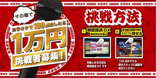 ◇キャンペーン内容:「ちょいKARADAM」で精密採点DXを選択し、100点が出るとその場で1万円を差し上げます。