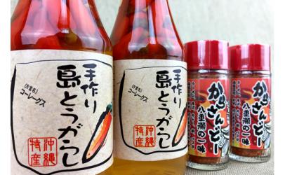 沖縄の太陽の恵みをたっぷり浴びた島唐辛子の実を、細かく粉砕し大切に作った、辛いもの好きの方もそうでない方も一度は試して欲しい一品の「一味唐辛子 からさんどー」と、沖縄そばには欠かせない「コーレーグース」の各2本セットです。