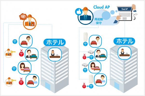 これらを複数同時にかんたん手軽に管理できるため、多数の拠点があるけれど一つ一つの拠点にそれほど高度な機能を必要としない企業や、客室それぞれにアクセスポイントを設置したいホテルなどに最適です。