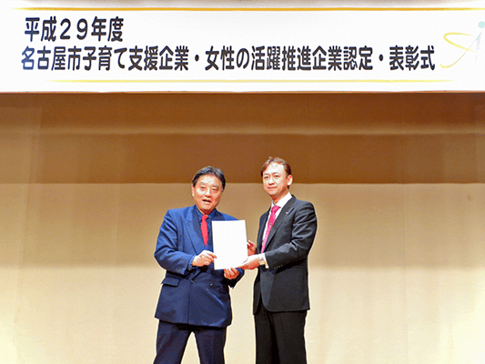 名古屋市では、「社会全体で子育てしやすいまちづくり」を推進するため、「子育てにやさしい活動を行っている企業」を認定しています。また「女性がいきいきと活躍できるような取組をしている企業」を認定しています。そして各部門の認定企業の中から、特に優れた活動や取組を行っている企業を表彰しています。