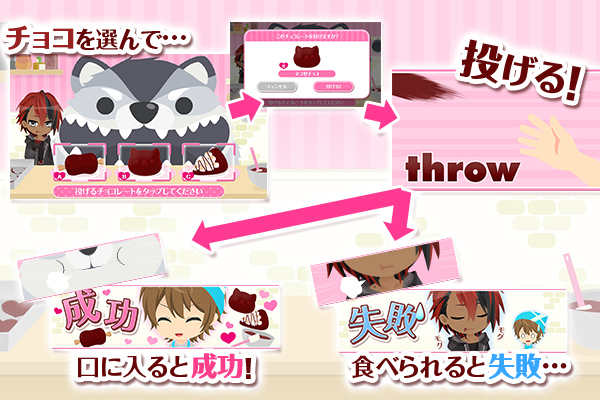 「成功」すると、バレンタインチョコを1つ獲得できます。