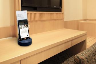 「handy」は、ホテル客室に備え付けの無料レンタルスマートフォンです。無料で国内通話・国際電話(中国、台湾、香港、韓国、フランス、アメリカの6か国)、インターネット通信を無料・無制限で利用できお客様の滞在をサポートします。