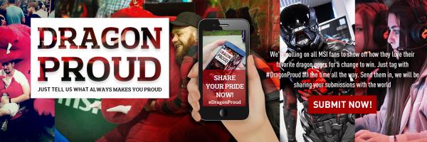 2018年2月1日-Micro-Star International Co., Ltd. 台湾・新北市- GAMING向けハードウェアの設計で世界をリードするMicro-Star International(MSI)は、SNSを通じてMSI製品に対する愛情を披露することで、豪華賞品が当たる「DragonProudキャンペーン」を、本日2月1日より6カ月間実施いたします。