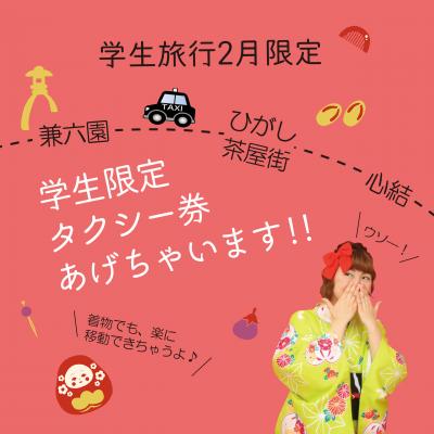 着物レンタルの『心結』(ここゆい/本店:金沢市本町/代表取締役:越田晴香)では、本年2月より学生限定で、金沢市内の美術館や博物館及び定番観光地へ行けるタクシー券プレゼントを開始する。