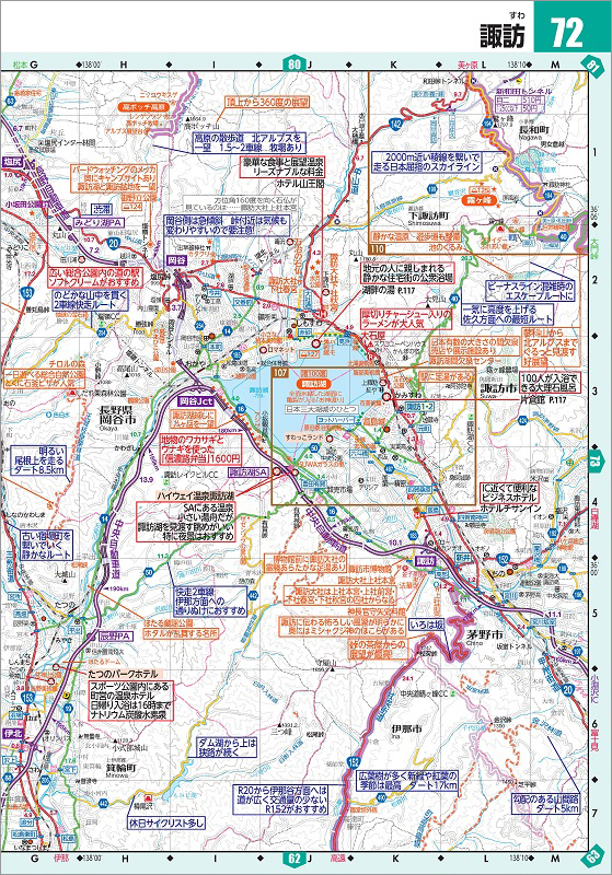 『ツーリングマップル』『ツーリングマップルR』シリーズの誌面には、以下の要素がふんだんに盛り込まれているところが他に類を見ない特色となります。