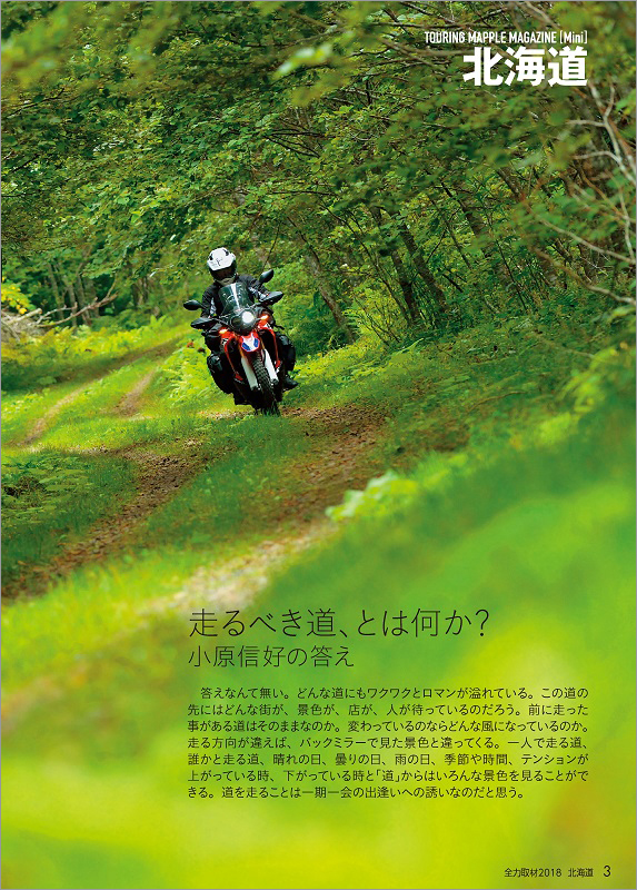 2018年版のテーマは「走るべき、道がある。」 絶景道、直線道、未舗装林道など、ライダーなら誰しもお気に入りの道があると思います。でも道は、時季や時間、走るときの気持ちひとつでいくらでも表情を変えます。
