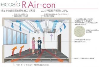 菊川では、輻射(*4)冷暖房システム「R Air-con(アール・エアコン)」を、主にビル空調における省エネと通年快適な室内空間を簡単施工で実現する環境建材として、2017年7月よりテスト販売しています。