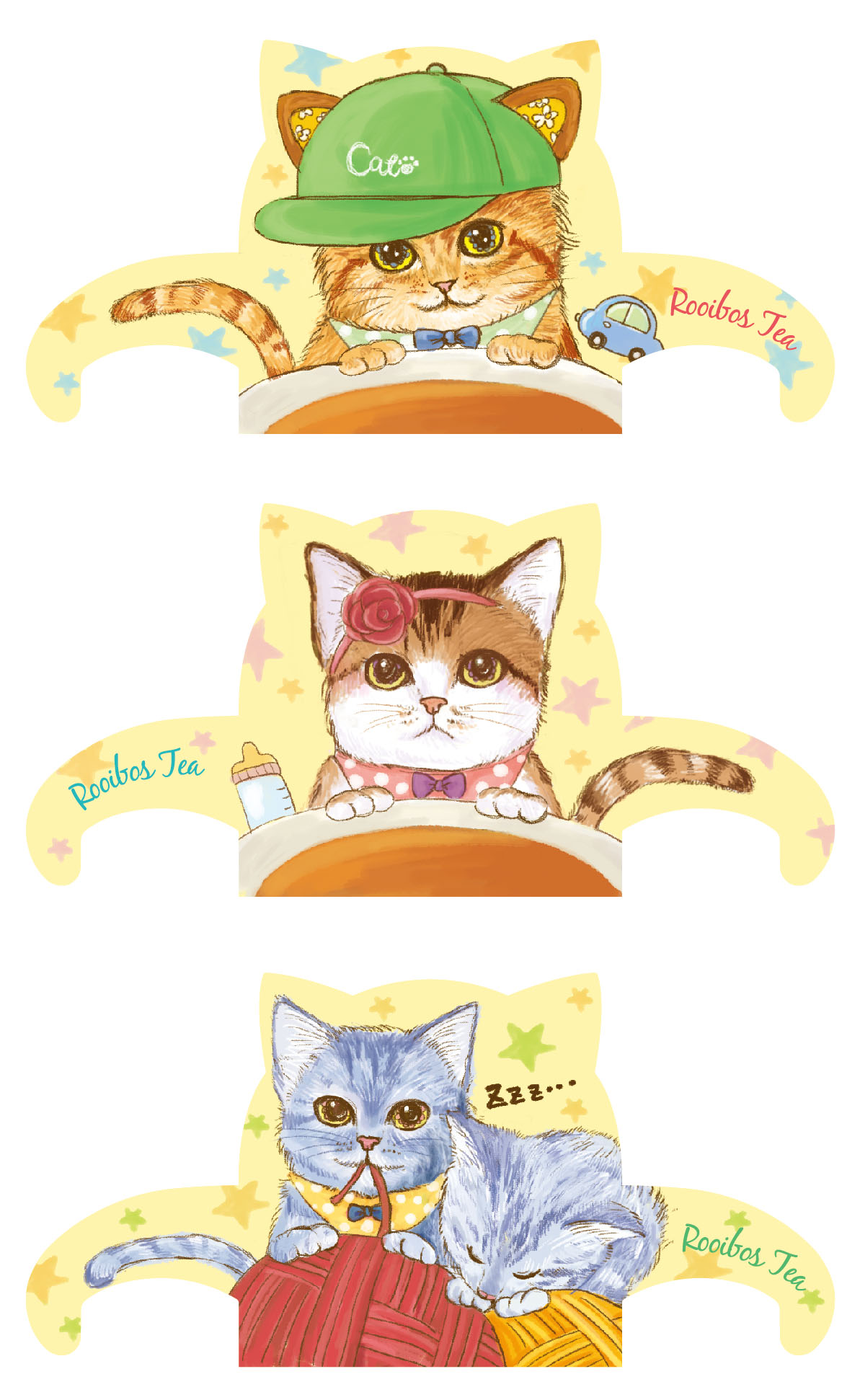 親にそっくりの子ネコ達が登場するネコ型ハーブティーバッグ