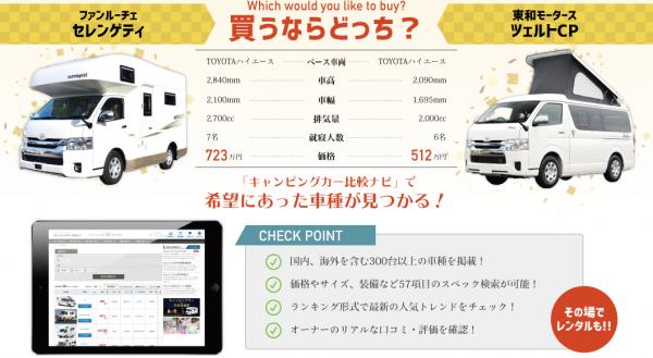 そういった背景をきっかけに国内・海外を含むキャンピングカーを、自分が求めるスペックで簡単に比較できる『キャンピングカー比較ナビ』をオープンいたしました。