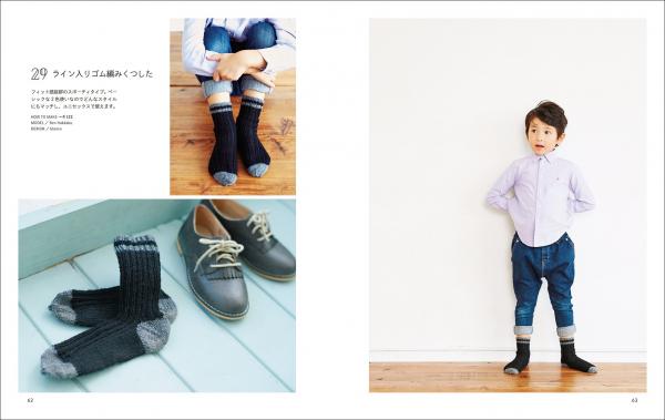 かぎ針と棒針で編み、2~3玉の毛糸で完成するこども用くつしたのレシピ集。