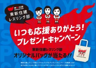 東新住建株式会社(本社:愛知県稲沢市、代表取締役社長:辻 明典、以下:東新住建)レスリング部は、2月9日(金)AM10:00から「いつも応援ありがとう!プレゼントキャンペーン」を実施します。特設サイトの応募フォームからお申込みいただくと、抽選で東新住建レスリング部の伊藤彩香選手・登坂絵莉選手・土性沙羅選手のイラストが入ったオリジナルトートバッグのサイン入りを10名様に、トートバッグとオリジナルシールとのセットを40名様にプレゼントいたします。応募期間は2月28日(水)AM10:00まで。