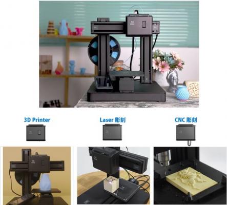 今回、Makuakeで募集が開始されたMoozは、一般的な3Dプリンタの機能に加え、レーザ彫刻やCNC彫刻が追加できるマルチファンクションの加工機で、28.5cmx28.5cmのコンパクトなスペースに置けるデスクトップサイズのプライベート工房です。