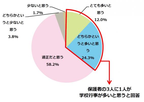 保護者の3人に1人は学校行事の頻度が多いと感じると回答
