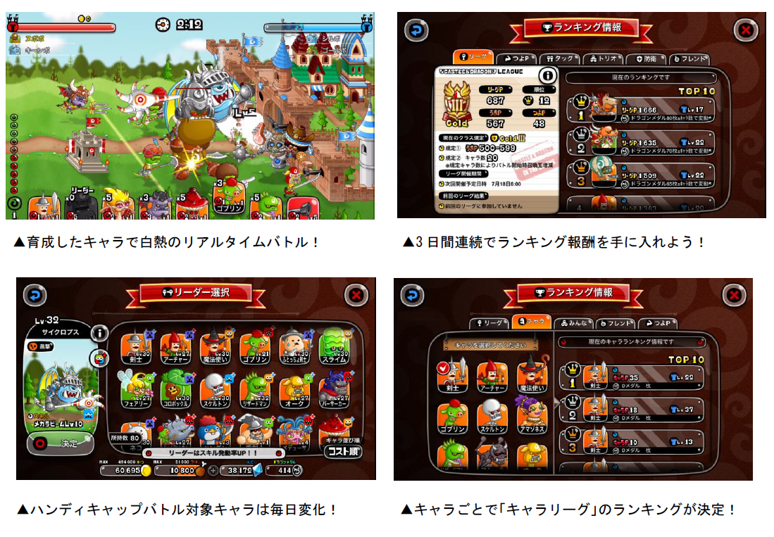 2月11日(日)からのリーグでは、日によって対象キャラが変わる「日替わり選抜キャラリーグ」が開催され、対象のキャラをリーダーにして勝利するとキャラPが獲得できます。獲得したキャラPによってキャラごとのランキングが決定し、順位の1番高いキャラのランキング報酬を獲得できます。また、日替わり選抜対象キャラの中で特定のキャラをリーダーにすると、能力値とスキル発動率が上昇する「リーダーハンディキャップバトル」を同時開催いたします。期間中、毎日変わる対象キャラをチェックしてリーグに挑みましょう!
