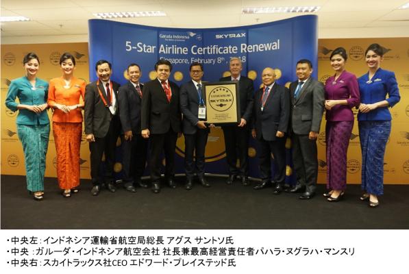 今回の5 スター認定更新式典に際し、ガルーダ・インドネシア航空の社長兼最高経営責任者、パハラ・ヌグラハ・マンスリは、「今回の5 スター認定更新は、2016 年から2017 年にかけて行われた、スカイトラックス社の更新監査プログラムを経て認定されたもので、これは単にガルーダ・インドネシア航空が世界的な航空会社として認定を受けたというだけでなく、インドネシアのおもてなしが世界にも認められた事を意味します。インドネシアのおもてなしを体現する、ガルーダ・インドネシア航空のサービスをさらに沢山の方に知っていただき、ご体験いただきたいと思います。