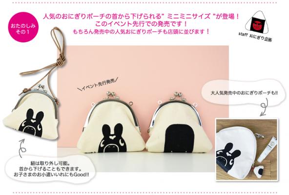 大人気アイテムのおにぎりポーチのミニサイズ首掛けタイプをイベント先行で発売いたします。