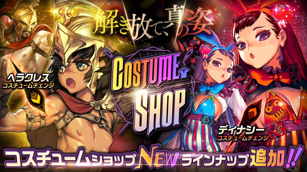 本日2018年2月14日(水)より、「コスチュームショップ」に★4「ヘラクレス」(CV: 藤沼建人、新コスチューム変更後 CV:山本和臣)、 ★5「ディナシー」(CV: 諏訪ななか)のコスチュームが登場!!