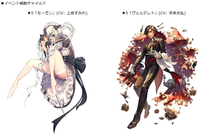 ボスを討伐すると獲得できるラグナコインを集め、イベント報酬チャイルドである、★5「モーガン」(CV: 上坂すみれ)と★5「ヴェルデレト」(CV: 市来光弘)を手に入れよう。