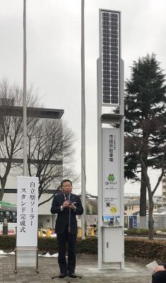 (*1) 自立型ソーラースタンド普及促進事業:2017年度の東京都環境局の取り組み。平常時だけでなく災害時にも、スマートフォンなどの充電や照明点灯が可能な自立型ソーラースタンドを設置する区市町村に対し補助を行う事業。
