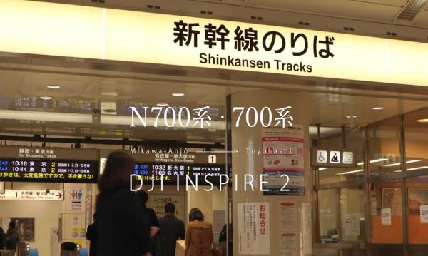 動画は三河安城駅に乗車するところからスタートし、豊橋駅へと向かう車両を車内と地上、空中の三点から撮影しました。700系の東海道区間の最高速度は270km/hにもなり、N700系に至っては285km/hにも及びます。